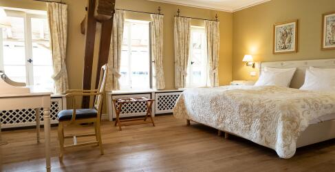 Der mehr als 850 Jahre alte Gutshof wurde aufwendig renoviert und mit viel Liebe zum Detail hergerichtet – so auch die Zimmer mit romantischem Ambiente und Landhausflair. Darüber hinaus kannst du dich in diesem Hotel in gleich zwei exzellenten Restaurants mit erlesenen Kreationen kulinarisch verwöhnen lassen. Hier erlebst du einen Kurzurlaub der ganz besonderen Art!