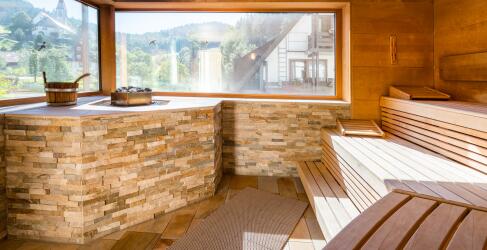 Panorama-Sauna mit atemberaubendem Blick in die Natur
