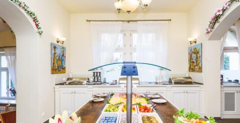 Starte deinen Tag im Spa Hotel Anglický Dvůr mit einem reichhaltigen Frühstück vom Buffet, das keine Wünsche offen lässt. Von frischen Früchten über knusprige Brötchen bis hin zu herzhaften Eierspeisen - hier findest du alles, was dein Herz begehrt.